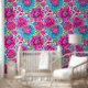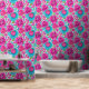 Ein nahtloses Preppy-Muster mit heißen rosa und blauen aster Blume mit frischen grünen Blätter auf weißem Hintergrund. Das Design verbindet lebendige Blumenelemente mit einem sauberen, hellen Hintergrund und schafft einen lebendigen und stilvollen Effekt