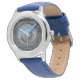 Kinderuhr aus Edelstahl mit blauem Lederarmband