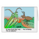 Gagplatten-Cartoon stellt einen betenden Mantis dar, der auf ein Insekt auf seinen trügerischen Blicken des Betens reagiert