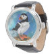 Uhr, Vintage Männeruhr mit schwarzem Lederarmband