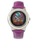 Uhr, Kinderuhr aus Edelstahluhr mit lila Lederarmband