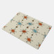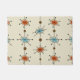 Ein Vintages abstraktes Kunstmuster aus der Mitte des Jahrhunderts, das mit den Retro-Sputnik-Sternexplosionen in Orange und Himmelblau kombiniert wird.