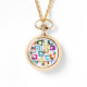 Diese Frauenuhr hat ein Design von Rechtecken, die sich an einem Ende in groben Farbtönen, orange, grün, aquamarin, lila, blau, rosa und gelb erstrecken, mit atomaren Linien, die sie kreuzen.