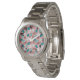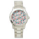 Diese Frauenuhr hat ein modernes atomares Design aus ovalen Konturen mit kleinen Kreisen und soliden bunten Ovalen in ihnen.