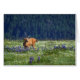 Ein Foto eines Schwarzenschwanzhirsches auf einer Wiese lila Lupinen und anderer Wildblumen. Ein steigender Berg im Hintergrund ist von Pinien bedeckt. Copyright ©2017 Kimberly J Tilley.