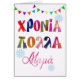 Eine helle Karte des Spaßes für Ihre Mutter an ihrem Aufgabetag. Er kennzeichnet bunte Beschriftung und festliche Flaggen. Und er ist sogar spezielles Sein auf Griechen, ihre eigene Sprache. χρονια πολλα μαμα