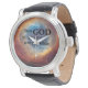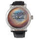 Uhr, Vintage Männeruhr mit schwarzem Lederarmband