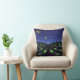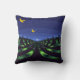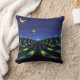 Dieses fantastische abstrakte Kissen bietet eine surrealistische Himmelslandschaft in blauen Wellen über grünem und schwarzem Land, die bis ins Unendliche zurückreichen, alles in einem hellen Licht. Drei goldene Tauben scheinen aus der unendlichen Lücke zu fliegen. Das Bild wird auf der Rückseite wiederholt.