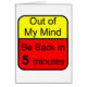 Aus dem Kopf. Sei in 5 Minuten wieder da! Ein hellgelbes und rotes Warnzeichen, das den Staat Ihres Geistes anzeigt. Ein lustiger T - Shirt lasse anderen zu wissen, dass man gelegentlich für ein paar Minuten aussteigt. Keine Sorge, du bist gleich wieder da.