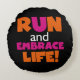 Ausführen und Einbinden von Orange-rosa Text Rundes Kissen