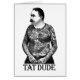Gelegentlicher Typ bedeckt in den Tätowierungen. Er gibt eine Erklärung ab. Viele Aussagen. Er hat mit Körper Art. bedeckt. Er ist der illustrierte Mann. Er ist der Außentemperatur-Typ!