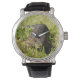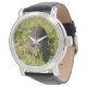 Uhr, Vintage Männeruhr mit schwarzem Lederarmband