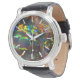 Uhr, Vintage Männeruhr mit schwarzem Lederarmband