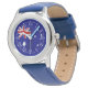 Kinderuhr aus Edelstahl mit blauem Lederarmband