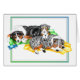 Diese australische Schäferfamilie hat sich für ein Nickerchen niedergelassen, die dreifarbigen und blauen Merle-Erwachsenen schlafen zwar schnell, aber sehen Sie, wer sich aushält - der winzige blaue Merle-Welpe. Hundekunst aus Danes-R-Us.