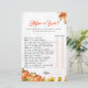 Add an exciting twist to your baby shower with this captivating Fall-themed 'Higher or Lower?' game card! Featuring a beautiful watercolor design of plump pumpkins and delicate autumn leaves, accented with subtle golden speckles, this game card perfectly blends with your seasonal decor. Guests will have a blast guessing whether the answers to fun facts about the parents-to-be are 'Higher' or 'Lower' than the given numbers. It's a fantastic icebreaker and a source of laughter and friendly competition for all attendees. Easily incorporate any specific event details or customized statements to make this game uniquely yours. Ideal for autumn baby showers, rustic gatherings, or harvest-inspired parties, ensuring everyone has a delightful and interactive time.