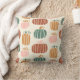Ein skurriles Muster mit von Hand gezeichnet Kürbissen in Erdtönen in Grün, Orange und Rosa vor einem hellen Hintergrund. Das spielerische Design spiegelt den Kern der Herbstsaison mit einem modernen, künstlerischen Flair wider.