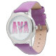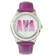 Uhr, Kinderuhr aus Edelstahluhr mit lila Lederarmband