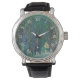 Uhr, Vintage Männeruhr mit schwarzem Lederarmband