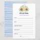 "Avocado Gender Neutral Baby Shower Advice for Mama" ist eine herzliche Art, die Mutter-zu-sein zu feiern! Dieses einzigartige Set mit Ratschenkarte besticht durch charmante Avocado-Designs und ein geschlechtsneutrales Thema. Die Gäste können ihre guten Wünsche, Tipps und Weisheitsworte für die junge Mutter teilen und so einen wertvollen Sake schaffen, den sie für immer schätzen wird. Fügen Sie der Feier eine Touch Süße hinzu, mit diesen bezaubernden Ratenkarten, die das Herz der Mama mit Sicherheit wärmen werden.