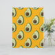 Ein Avocadomuster im Stil eines Cartoon auf einem orangefarbenen Hintergrund. Originelles Design.