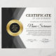 Berufliches modernes Schwarz-Gold-Zertifikat Award-Flyer-Template mit einer Goldumrandung auf "Zertifikat", Schwarz-Gold-Medaille mit Blattdesign und einem weichen grauen Hintergrund. Passen Sie auf Ihre Wünsche ein.