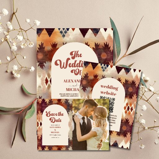 Elevate your special day with the captivating allure of our QR Code Aztec Tribal Brown Ethnic Western Wedding Invitation. Designed with meticulous attention to detail, this invitation is more than just a piece of stationery; it's a gateway to unforgettable moments and cherished memories. With its vibrant Aztec tribal patterns and rich brown hues, this invitation exudes warmth and authenticity. It's not just a piece of paper; it's the key to a wedding experience like no other. Your guests will be enchanted from the moment they lay eyes on it. But what sets this invitation apart is its cutting-edge QR code technology. Seamlessly blend tradition with innovation as you incorporate a personalized QR code that can lead your guests to a dedicated website, photo gallery, or even a heartfelt video message from you and your partner. Share your love story in a way that's uniquely you. The benefits are clear: Memorable Elegance: Impress your guests with the distinctive Aztec design that sets the tone for a remarkable celebration. Effortless Information Sharing: Say goodbye to cluttered inserts; the QR code effortlessly directs your guests to all the event details. Reduced Environmental Impact: By using digital content, you're making a sustainable choice for your wedding. Time and Money Saving: No more fussing with postal delays or extra costs. Send your invitations instantly via email or social media. Make your special day even more special with our QR Code Aztec Tribal Brown Ethnic Western Wedding Invitation. With this one-of-a-kind invitation, you're not just inviting your guests; you're inviting them to a truly unique experience. Order now and let your love story unfold in a way that's modern, meaningful, and memorable. Your dream wedding is just a click away!