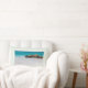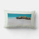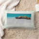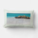 Ein Kissen mit einem schönen Foto. Ein weißer Sandstrand mit einer sanften Brandung. Das türkisblaue Wasser umgibt einen zackigen Felsen.