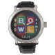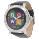 Uhr, Vintage Männeruhr mit schwarzem Lederarmband