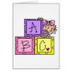 Ein entzückendes Babymädchen und drei Alphabetblöcke auf Baby ABC-T-Shirts, Tassen, Karten, Aufklebern, Taschentaschen, Bodysuits, Porto-Briefmarken und anderen Einzelteilen.