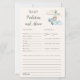 Create a lasting memory for the parents-to-be with this charming 'Baby Advice and Predictions' game card. Featuring a whimsical watercolor teddy bear flying a vintage airplane, this design is the perfect addition to a 'We Can Bearly Wait' or aviation-themed baby shower.
