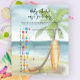 Baby an Bord! Baby Dusche Einladung - perfekt für eine Sommerdusche. Thema Strand. Das Aquarelldesign besticht durch eine Ozean- und Strandlandschaft mit Surfbrett, Palmen und Sommerhut.