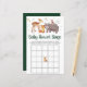 Sweet winter baby Dusche Bingo Spiel mit niedlichen Aquarellbildern von Waldtieren, Blumen, Grünpflanzen und goldenen Sternen und Schneeflocken und "Baby Shower Bingo" in einer waldgrünen Schrift.