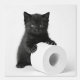 Baby Black Kitten Guarding Toilet Paper Roll On Tapete
