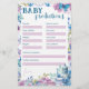 Baby Shower Baby Predictions Spielblatt - Spaß beim Spielen auf Ihrem Party ist das Brauen von Tee Babydusche. Die Babydusche des Tee-Party ist mit Teetassen, Teekanne, Blume, Makaron und Schmetterlingen mit einem rosa und blauen Hintergrund versehen.