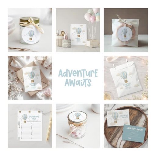 Adventure awaits blue hot air balloon baby showerDesignt von Stacy Speakman-Cooke