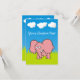 Niedlicher Elefant-Cartoon. Transparentes Design für helle und dunkle Gegenstände. Abnehmbare Hintergrundelemente (Himmel, Gras, Wolken). Bereit zum Hinzufügen von benutzerdefiniertem Text.