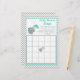 Genießen Sie eine wunderbare Babydusche mit diesem bezaubernden Baby Shower Bingo Spiel! Diese Karte wurde so gestaltet, dass sie unsere Baby Elefant Baby Dusche einlädt. Sie verfügt über einen aquamarinen Elefanten und einen Schirm mit sanftem Zickzack Hintergrund.