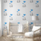 Baby Elephants & Blue Heart Balloons Design Tapete. Ideal für ein Kinderzimmer, Kinderzimmer oder Spielzimmer.