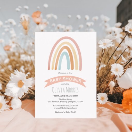 Baby Girl Niedlich Pink Boho Rainbow Baby Dusche Einladung