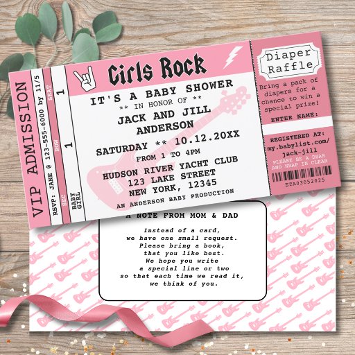 BABY GIRL SHOWER CONCERT TICKET EINLADUNG