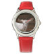 Kinderuhr aus Edelstahl mit rotem Lederarmband