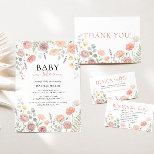Baby In Bloom Blush & Teal Spring Floral Shower Einladung