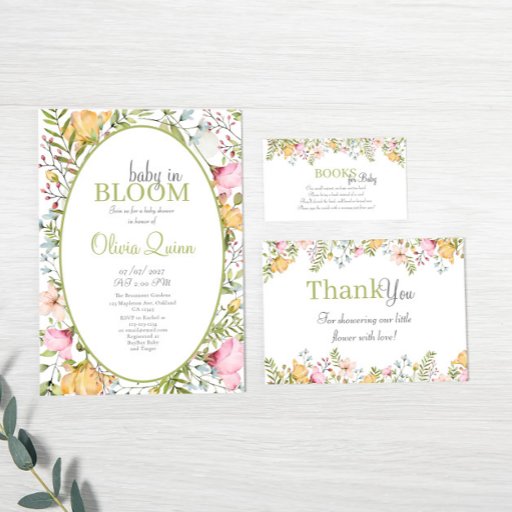 Baby in Bloom Wildblume Bloral Baby Dusche Einladung