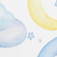 Diese Tapete ist perfekt für ein Baby Kinderzimmer geeignet und hat ein sich wiederholendes Bild einer grauen Koala Bärenmama mit ihrem schlafenden Baby auf dem Rücken. Beide Bären Erholung auf einem blauen Halbmond. Gelbe Monde, Sterne und flauschige Wolken umgeben sie. Alles ist auf einem weißen Hintergrund platziert. Arbeitet entweder für einen kleinen Jungen oder ein kleines Mädchen!