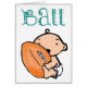 Niedliches Baby, das Fußball hält. Vervollkommnen Sie Karte für diesen wenigen Fußballspieler.