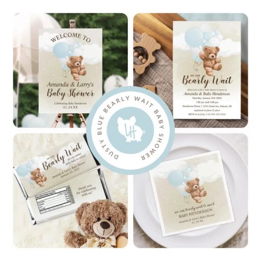 Dusty Blue Balloon Teddy Bear Baby ShowerDesignt von Amanda Cudnik