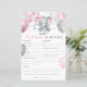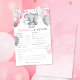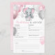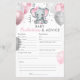 Diese Baby Vorhersagen Dusche Spielkarte verfügt über rosa und graue Mädchen Elefanten mit Ballons und Konfetti. Ideal, damit Ihre Gäste mitspielen können.