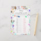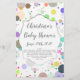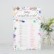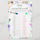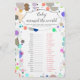 Diese Babydusche-Spielkarte bietet einen modernen Schriftart auf vielfarbigem Punktehintergrund, ideal für einen kleinen Jungen, ein kleines Mädchen oder eine Überraschung! Benutzen Sie diese Karte für Ihr Party. Die Rückseite ist mit den Antworten.