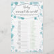 Diese Babydusche-Spielkarte bietet einen modernen Schriftart auf pastellblau durchsichtigem Punktehintergrund, perfekt für einen kleinen Jungen! Die Rückseite ist mit dem Antwortschlüssel. Bitte Karo alle Spiele aus dieser Kollektion unten.